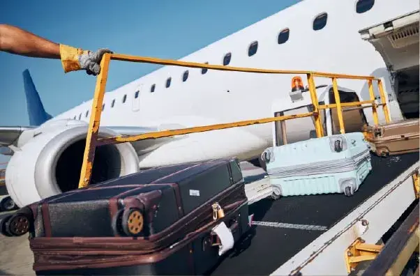 - Koffer und Taschen, die am Schalter aufgegeben werden und im Frachtraum transportiert werden.