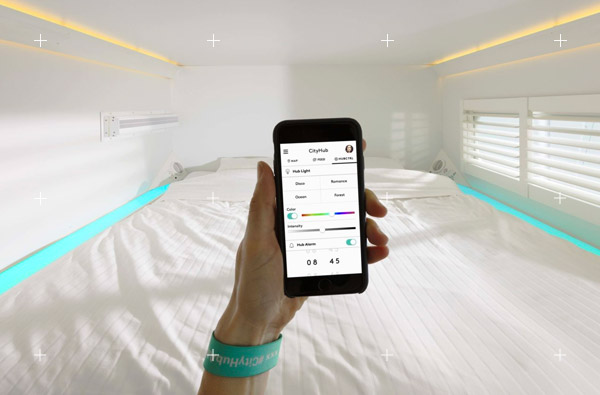 - Les clients reçoivent à leur arrivée des bracelets intelligents qui leur permettent non seulement d’accéder à leur chambre mais aussi de payer les boissons et snacks au bar libre-service de l'hôtel, et d'accéder aux consignes privées disponibles à l’hôtel.